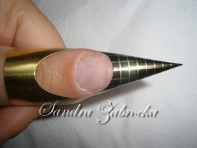 Na płytkę doklejamy formę(nie pod paznokieć,a na,jak na foto)i modelujemy krztałt i dłógość.