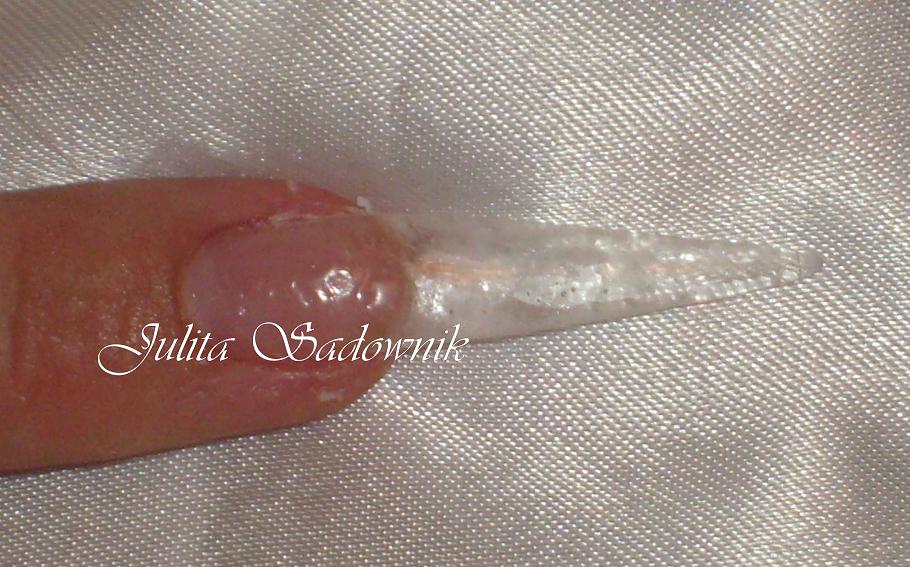 1.Ustalamy dłógość paznokci,licząc na to ze bedziemy póżniej doklejac na płytkę paznokciową +3 lub 4mm nie dokładając zdobienia (jeśli będziecie maskować płytkę cowerem,kamuflażem)