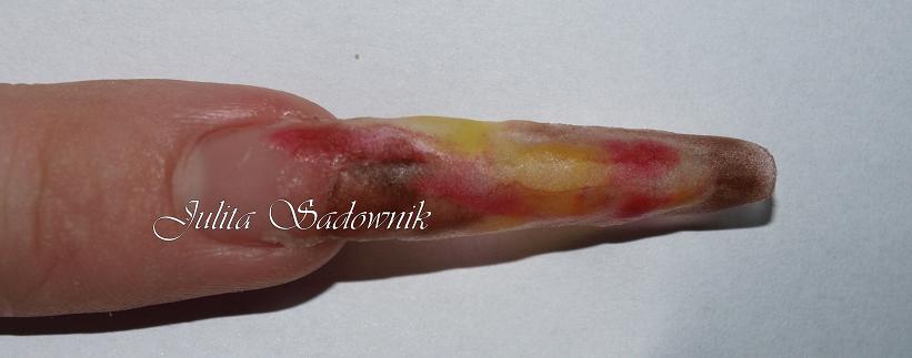 4. nakładamy zabarwiony akryl starając się cieniować