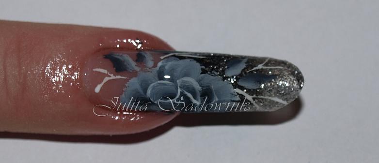 Stylizacja Edge z kwiatami akrylowymi plus farbka akrylowa..Zdobienie z obecnego wydania Nail Art..