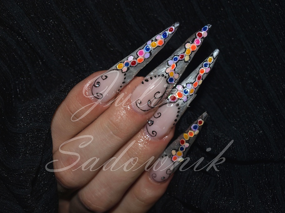 Moje szpice dla mm, żel revolution oberżyna + holo, + farbki polycolor