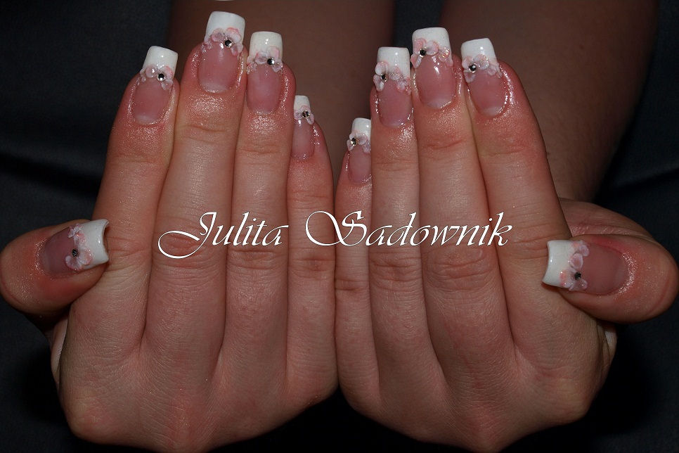 ostatnie pazurki sa cudne Jula...bardzo fajnie wyglada zakonczenie bialej koncowki z tymi kwiatkami :)