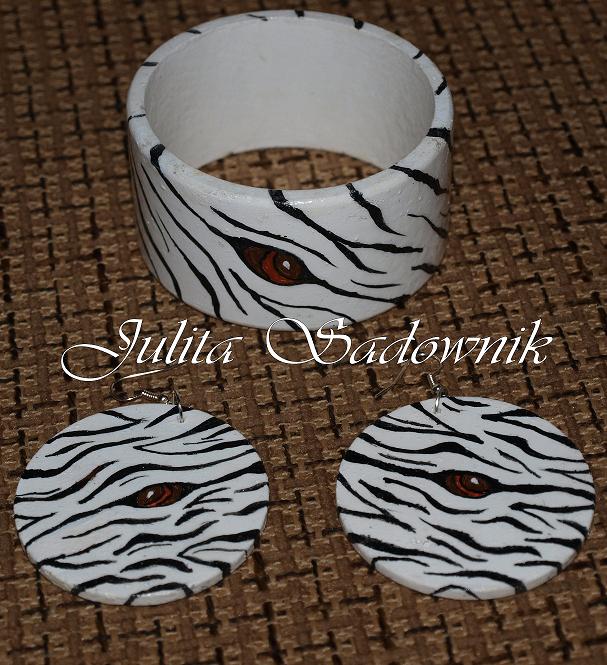 gratulacje publikacji!!!! :D:D a komplecik- boski, chyba sobie w myślach czytamy, bo kilka dni temu też zeberke zrobiłam, ale jeszcze jest bez zamocowanych bigli więc jeszcze sie nie chwaliłam hehe :D śliczna!!!!!