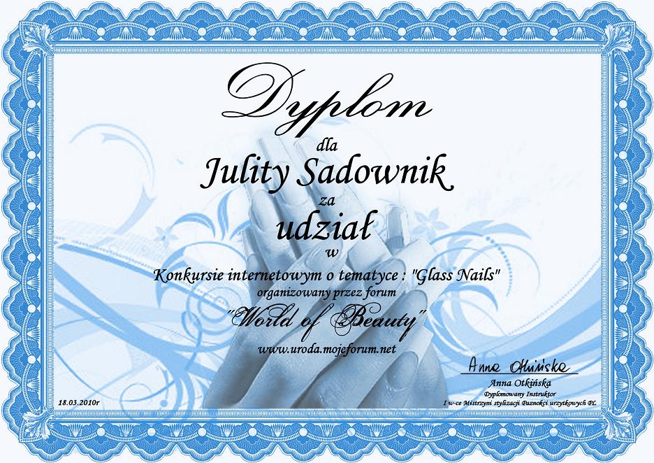 wiecie jaka jestem gapa :p taka radocha z dyplomu była ,że nawet nie zauważyłam błędu w moim nazwisku :P :skacze::skacze: czekam na wersje poprawioną :D
